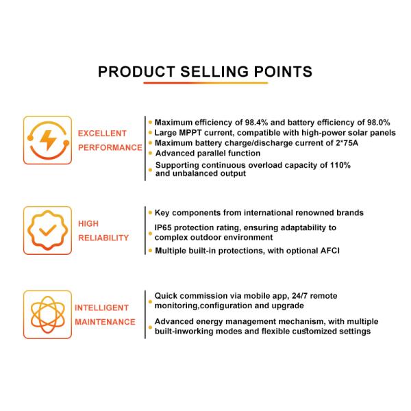 1.Maximum efficiency of 98.4% and battery efficiency of 98.0%
